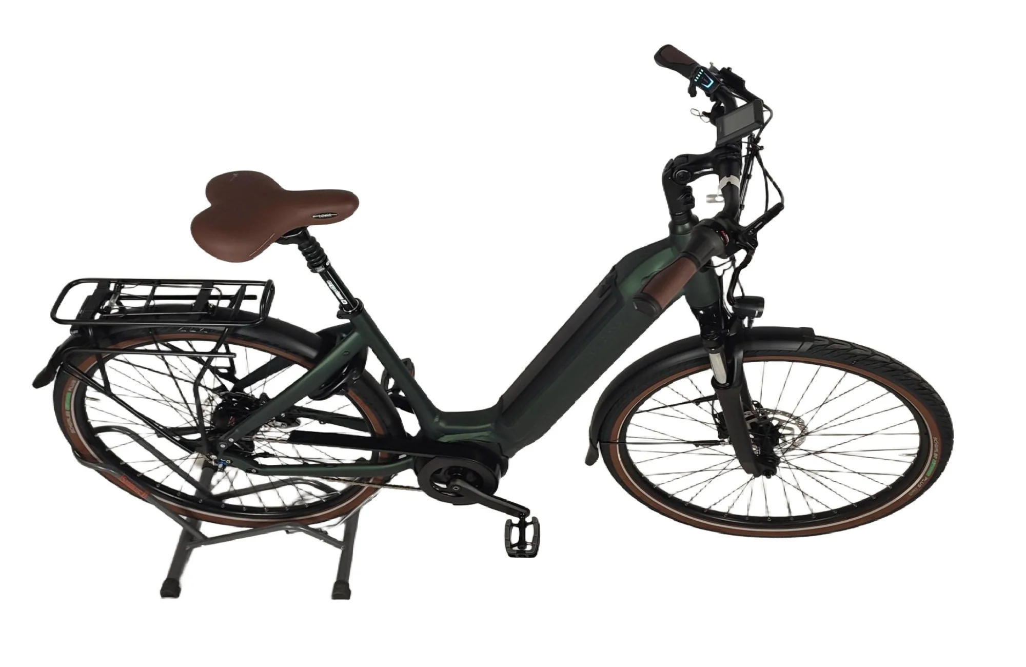 Le vélo est livré avec un porte-bagage et des garde-boue.