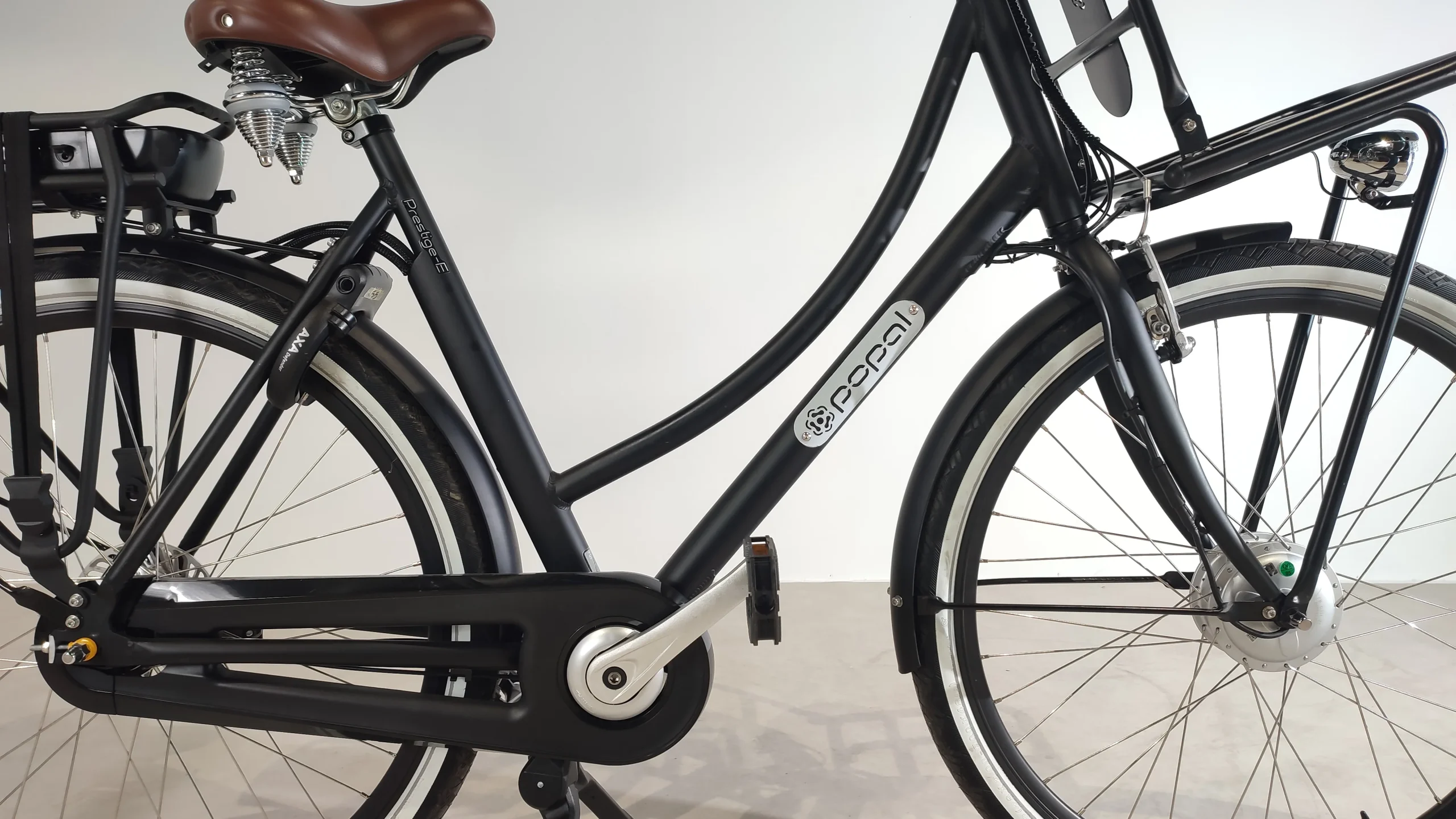 Le vélo est livré avec un porte-bagage avant et arrière ainsi que des garde-boue.
