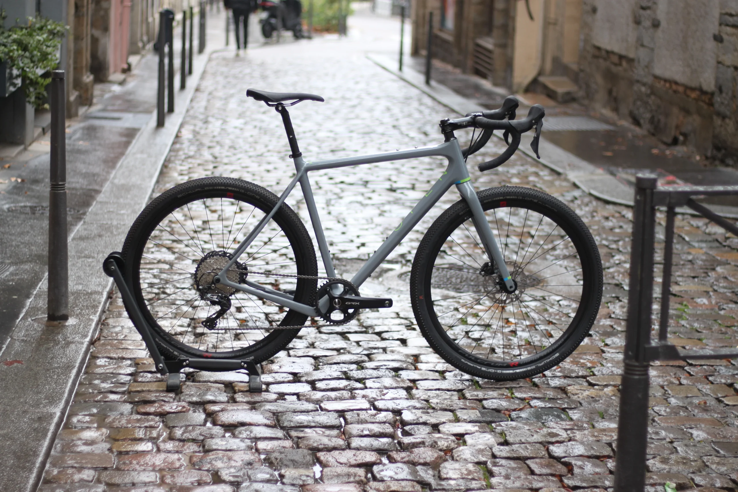 Le Open WI.DE reprend les caractéristiques du UP avec des pneus plus larges et une géométrie adaptées pour augmenter les capacités de franchissement du vélo.