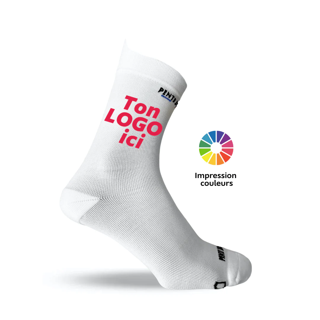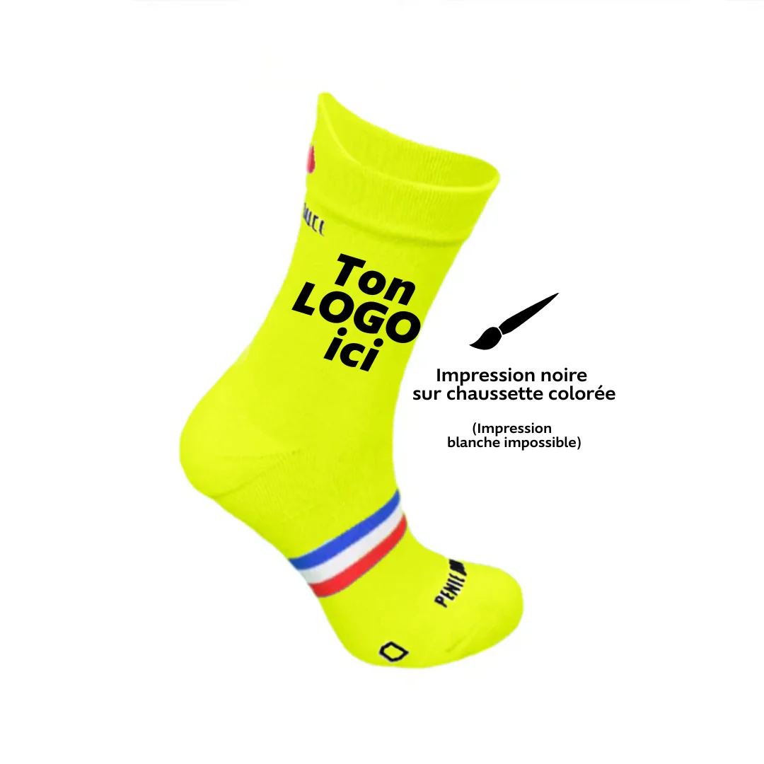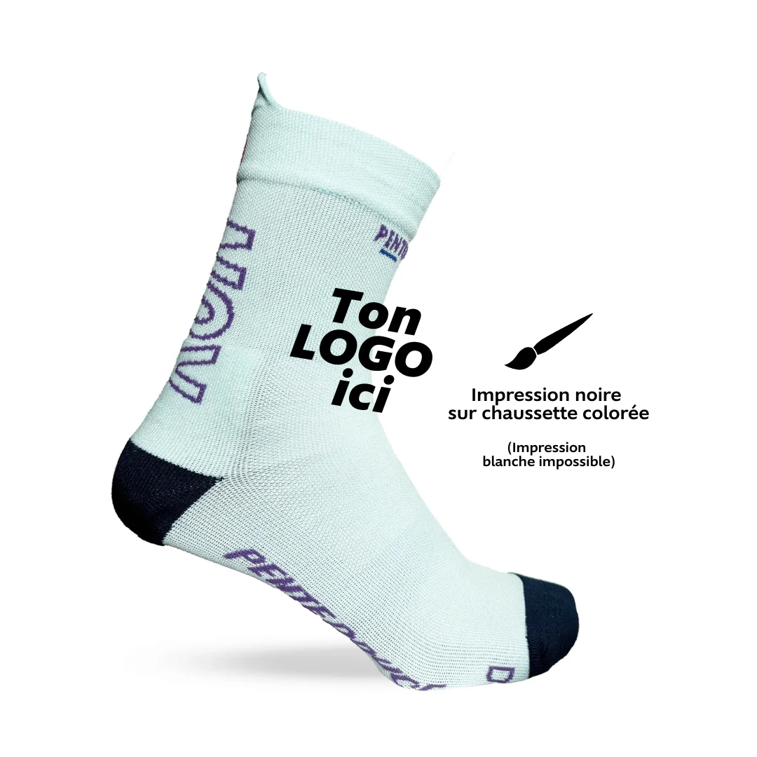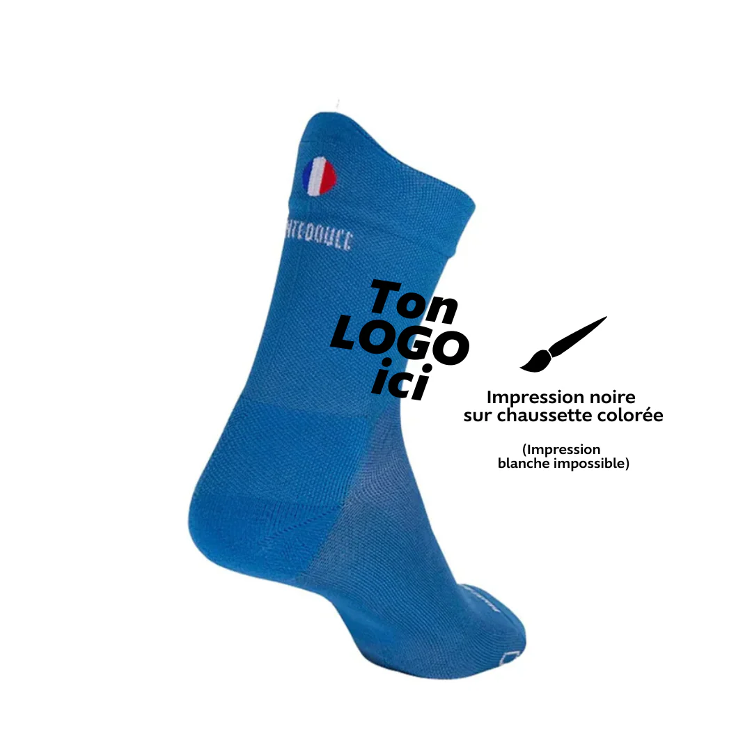 Désormais, nous pouvons personnaliser une paire de chaussettes avec une machine à sublimation. La sublimation est une impression à chaud dans la maille. (Les couleurs tiennent et ne risquent pas de partir au lavage)