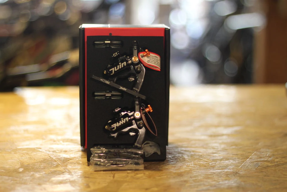 Paire d’étriers de frein à disque JUIN TECH 4 pistons hydrauliques actionnés par câble.
