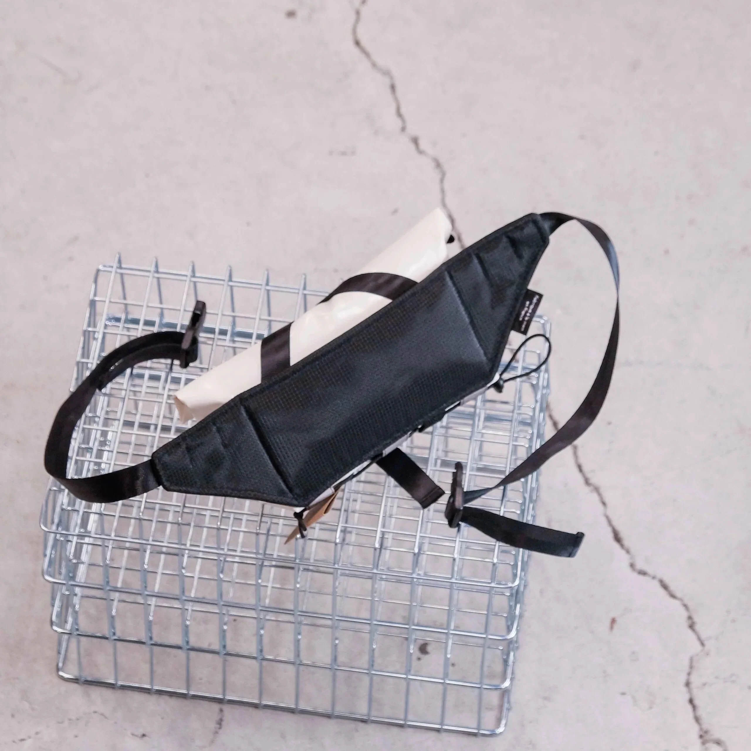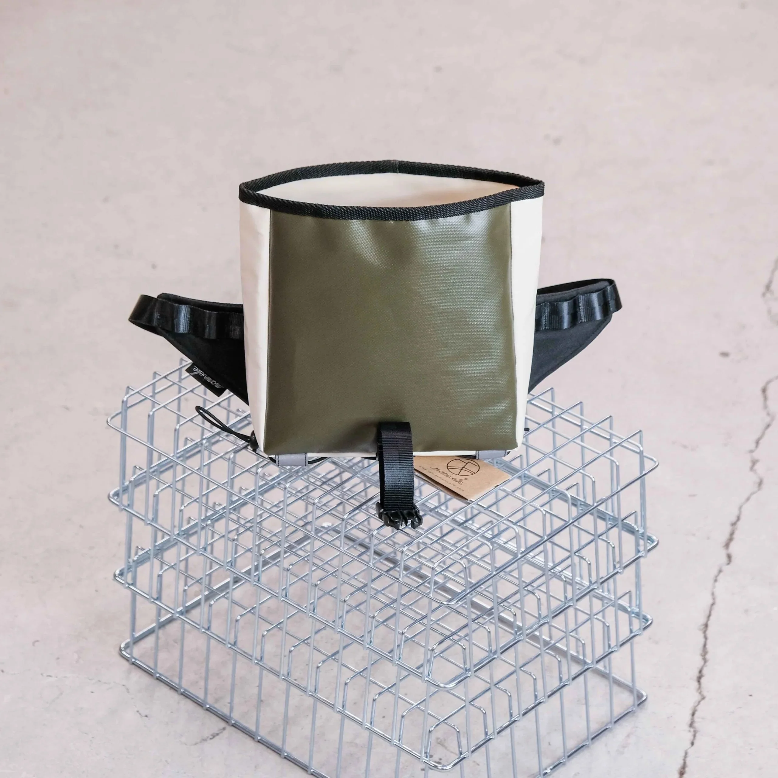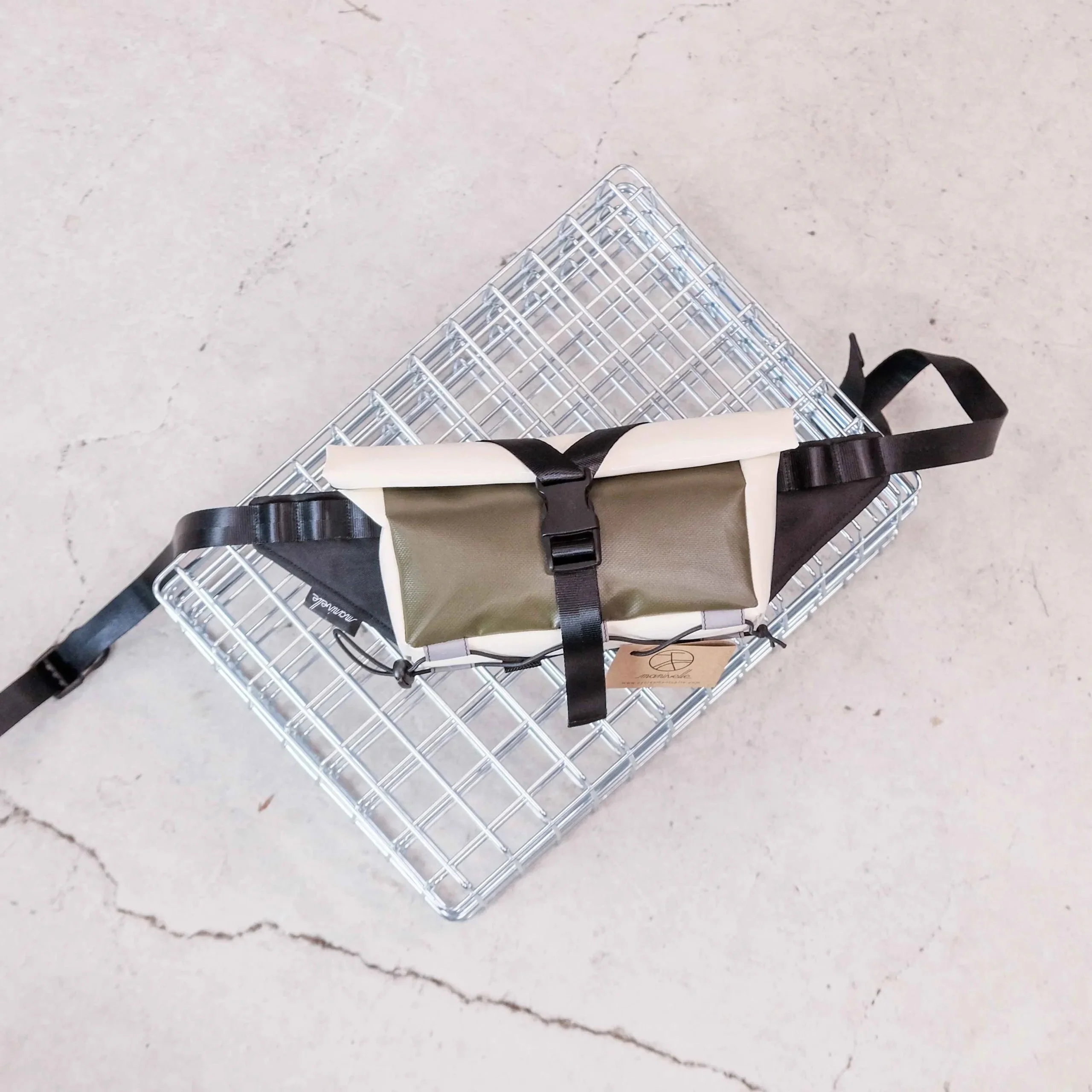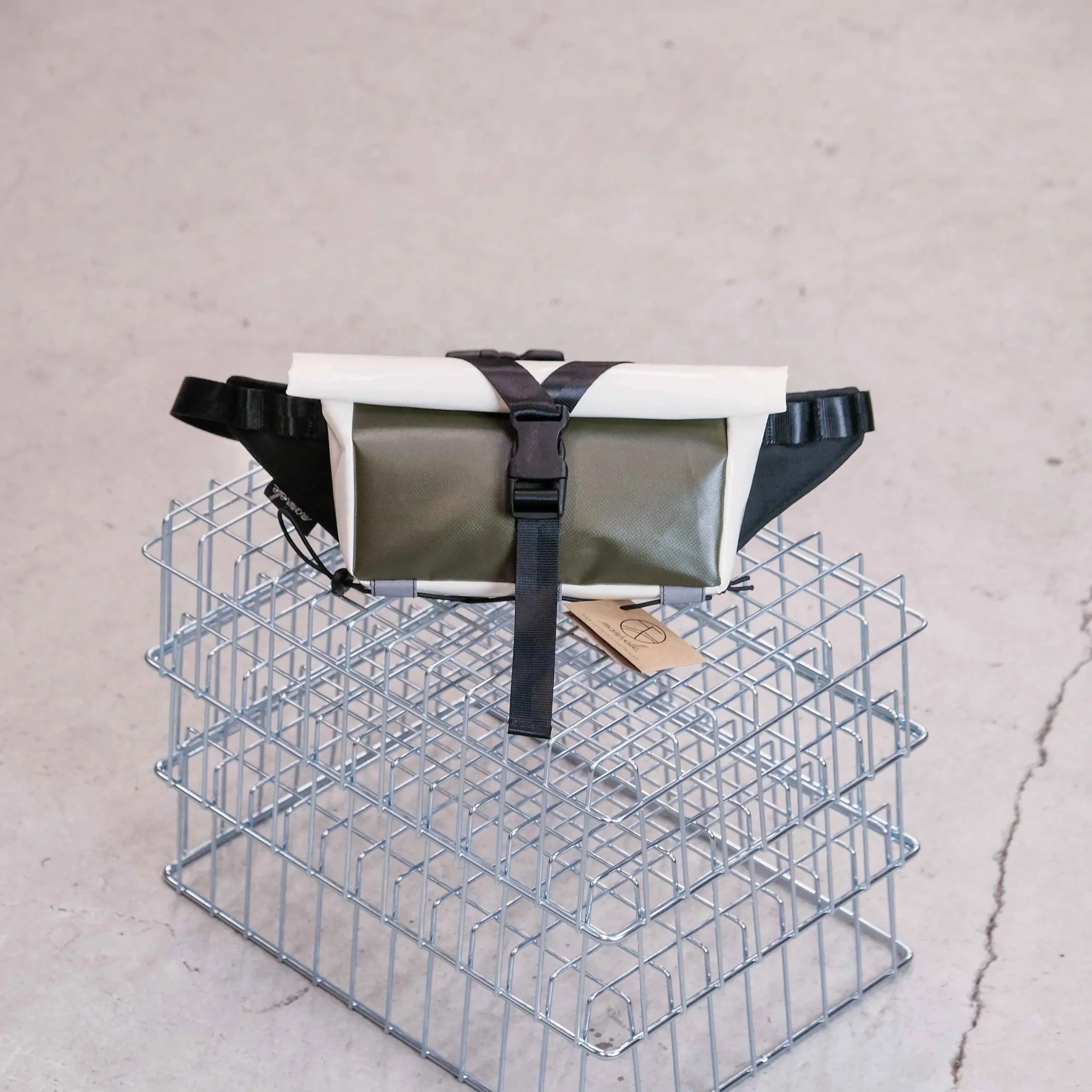 La Banane est étanche grâce à son système de fermeture roll-top, sa taille est idéale pour y loger papiers, téléphone, petit encas, votre appareil photo compact, quelques outils ou votre veste de pluie.