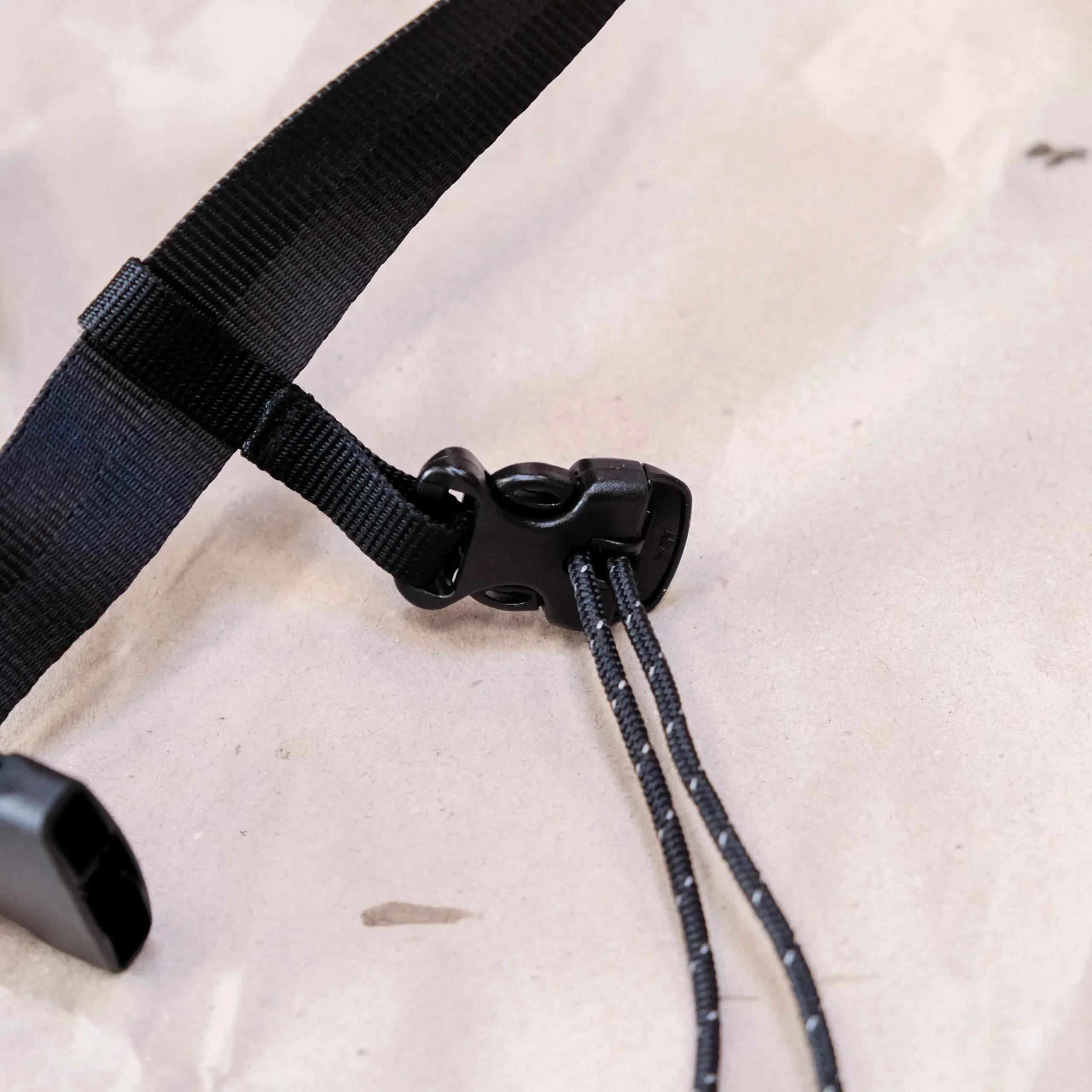 Le cordon élastique tressé sous la banane permet d’y enfiler rapidement votre couche supplémentaire ou votre gourde. Les passants de ce cordon sont réalisés en chute de gilets fluo et vous donnerons de la visibilité dans le traffic.