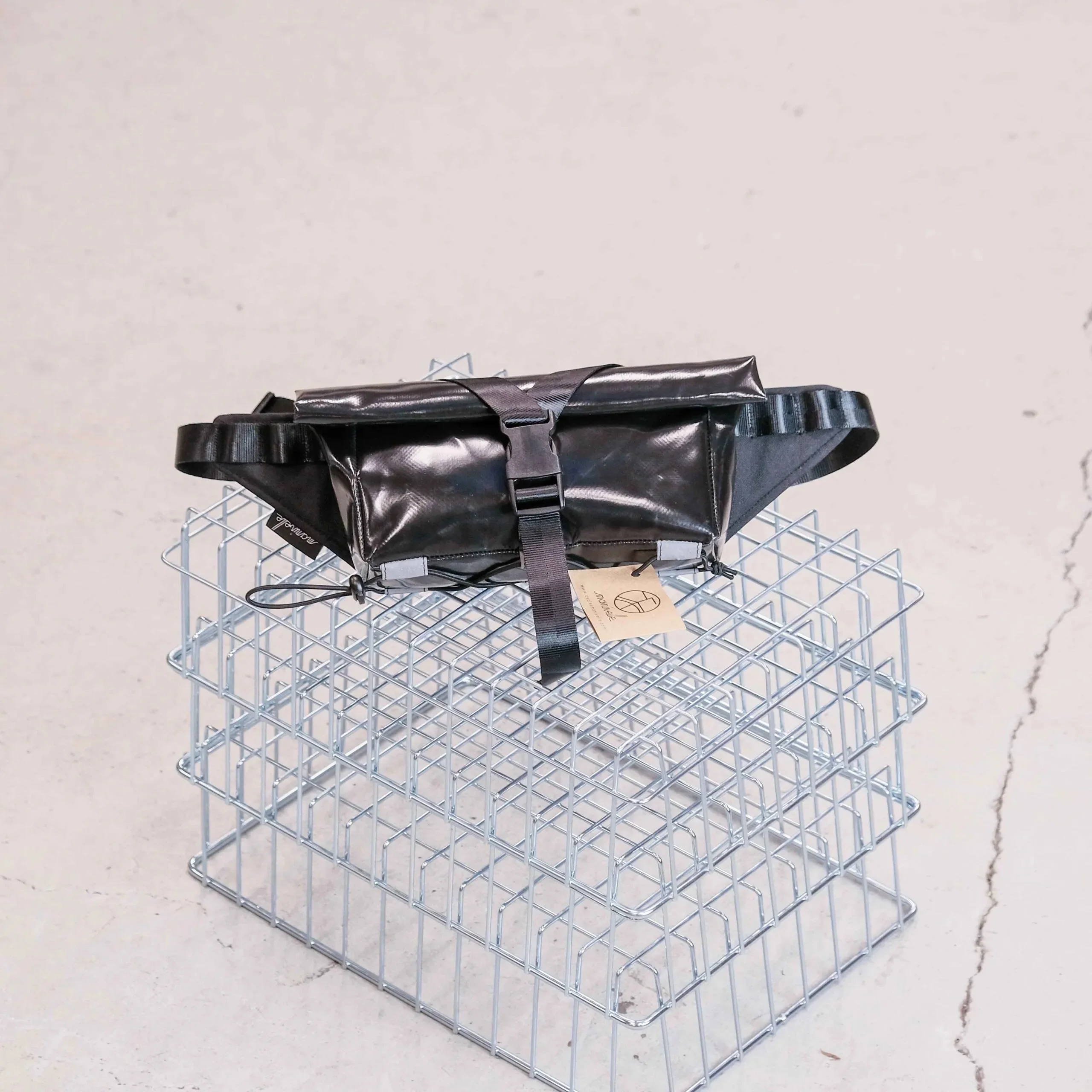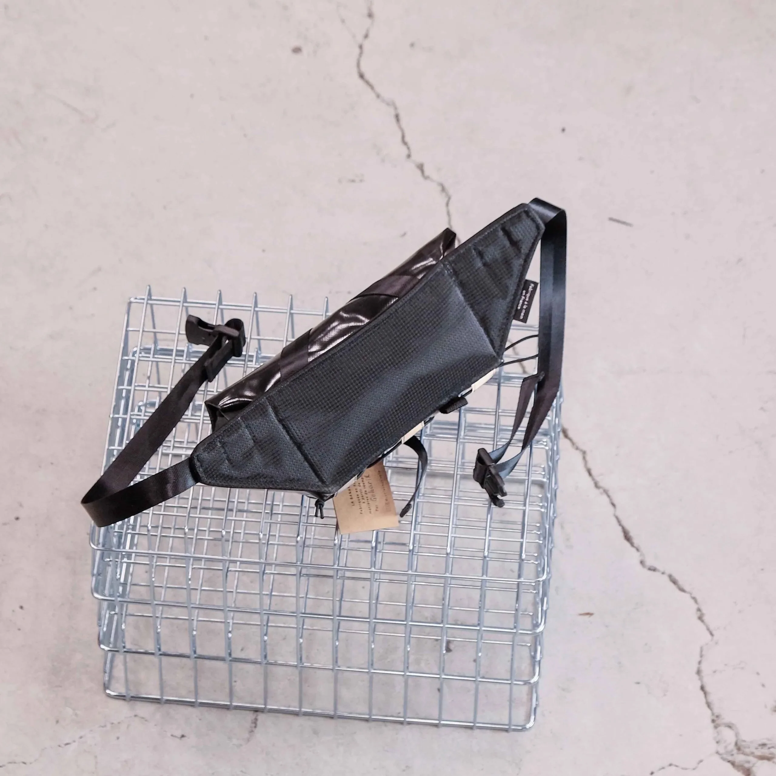 Comme toute la bagagerie, la banane est fabriquée à la main à Strasbourg par la superbe équipe de Libre Objet, à partir de bâche de camion de réemploi.