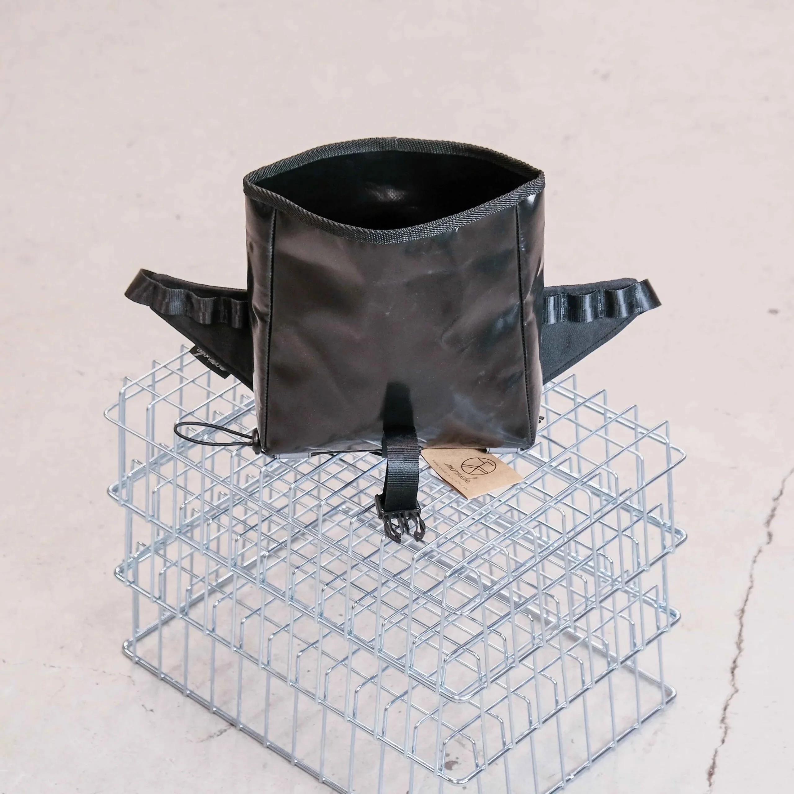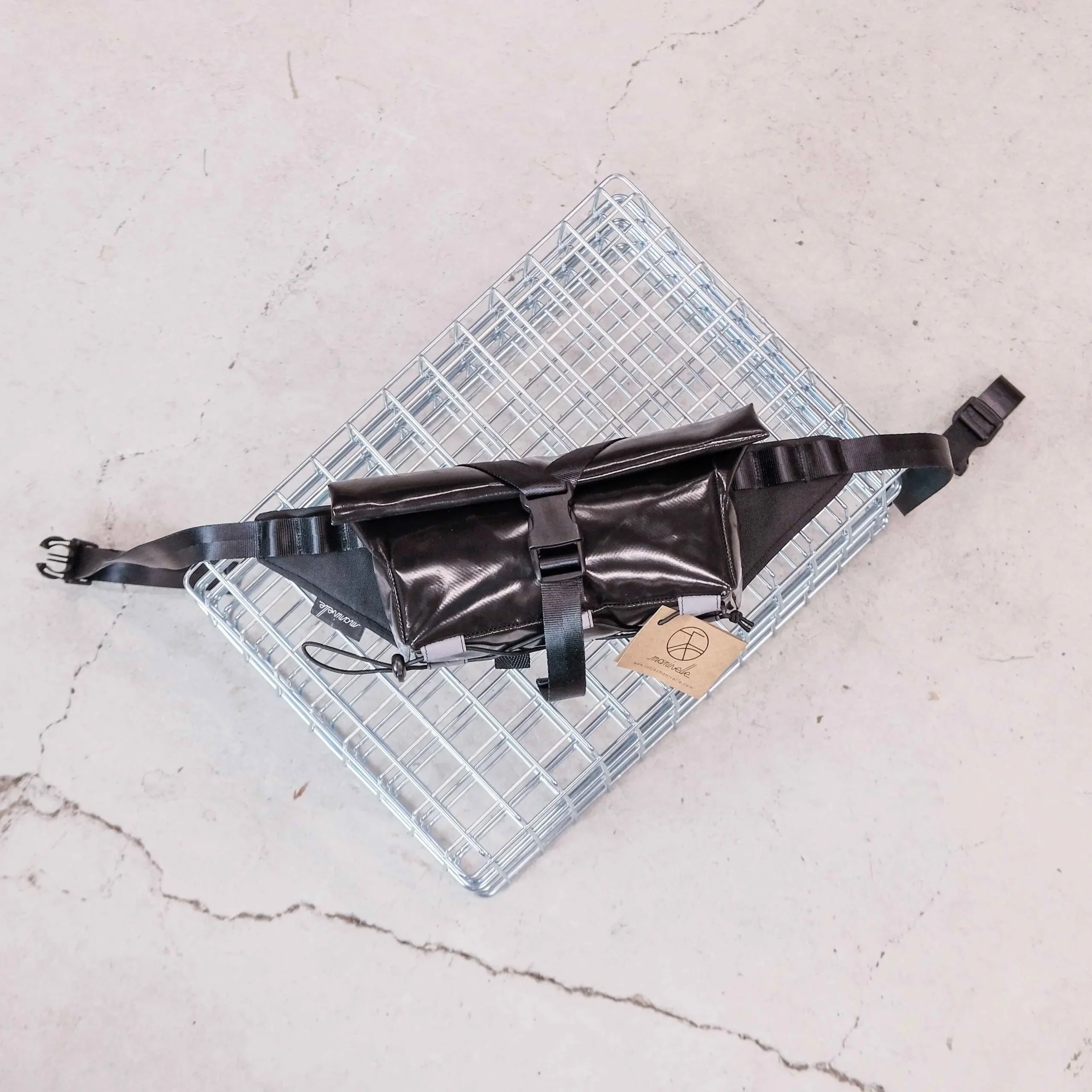 La Banane est étanche grâce à son système de fermeture roll-top, sa taille est idéale pour y loger papiers, téléphone, petit encas, votre appareil photo compact, quelques outils ou votre veste de pluie.