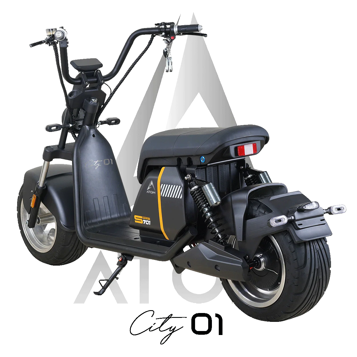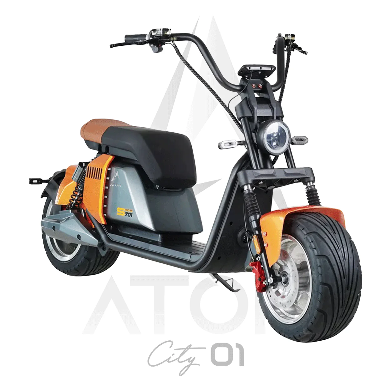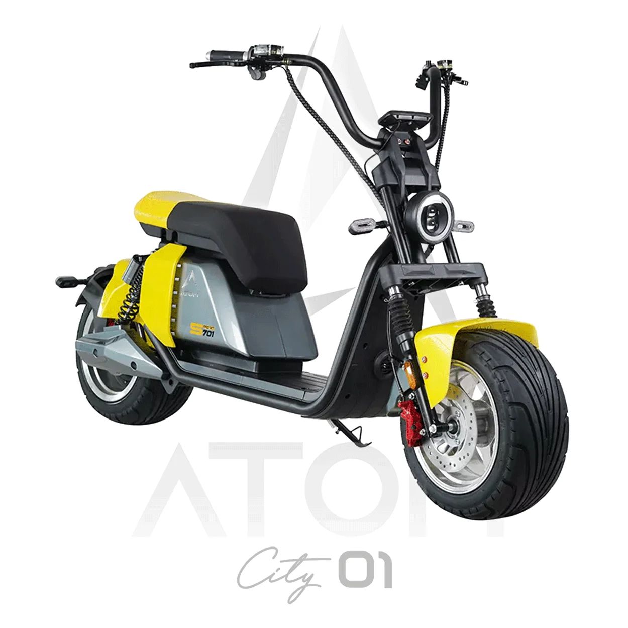 L’Atom City 01 est un scooter électrique équivalent 50 cc. Sa légèreté, sa selle rembourrée et sa position de conduite adaptée vous permettront de vous déplacer dans le plus grand des conforts et la plus grande des praticités pour vos trajets quotidiens.