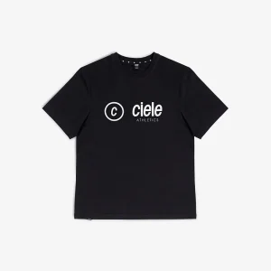 Le Steel T-Shirt « Pizza » arbore notre nouvelle mascotte sous forme de bidon, ici roulant sur un vélo Gravel tout en essayant de boire une tasse de café.