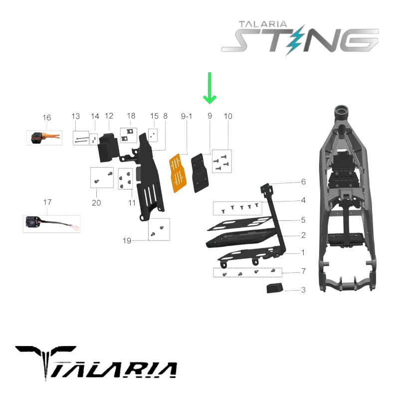 - 1x Tapis caoutchouc avant d’origine Talaria Sting (Les 4 vis nécessaires à sa fixation ne sont pas fournies.)