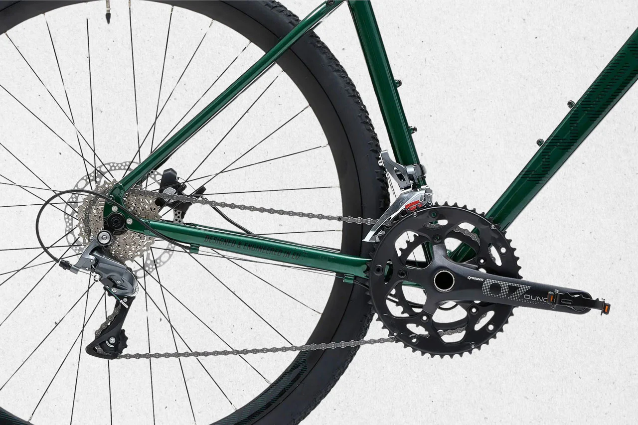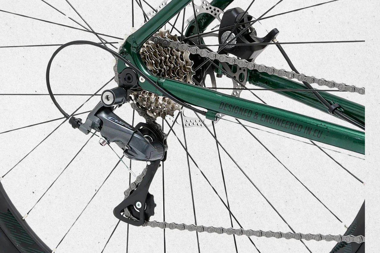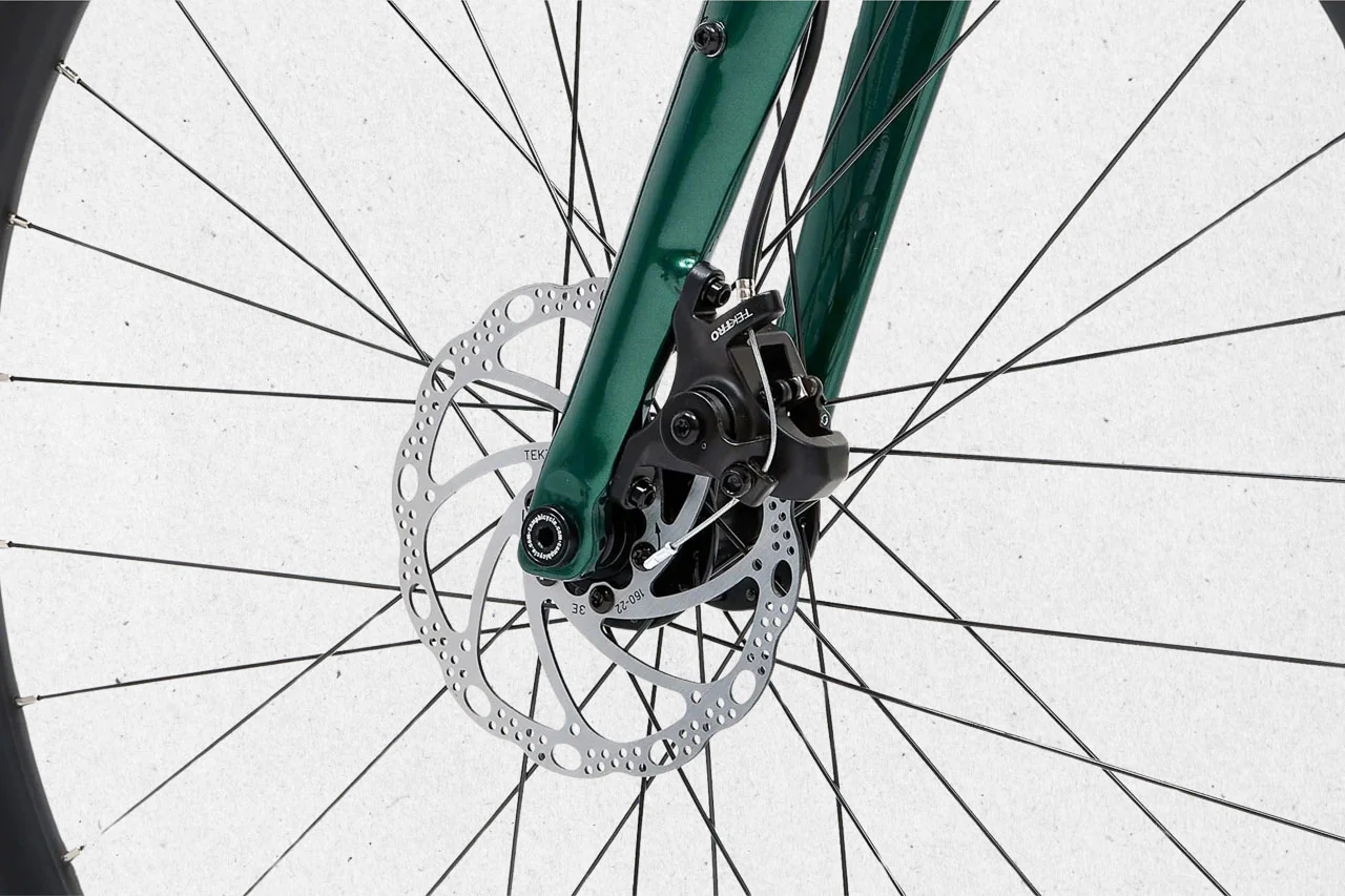 La transmission Shimano Claris en 2×8 vitesses permet d’enchaîner les kilomètres avec fluidité. Le freinage à disque mécanique est simple à entretenir, fiable en toutes conditions.