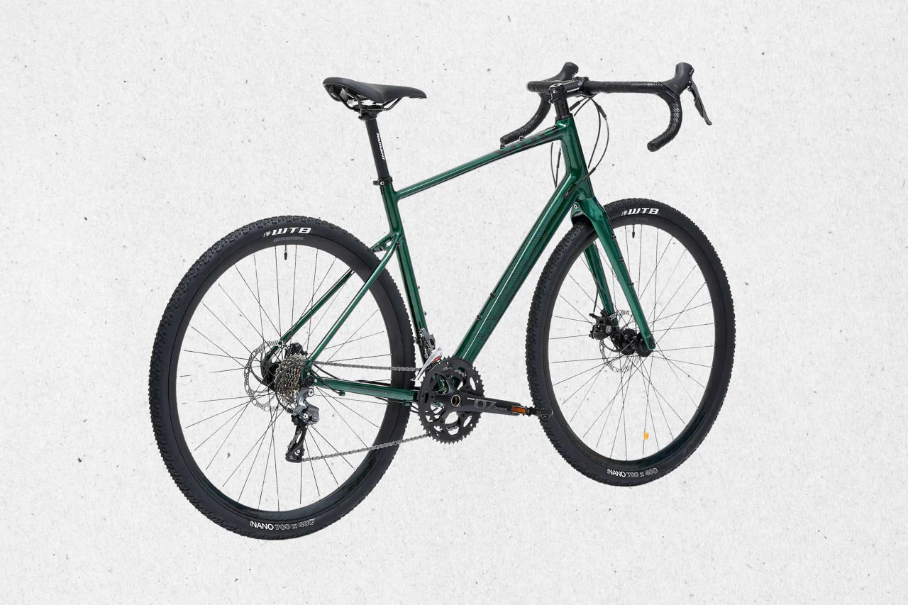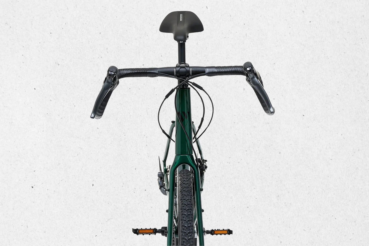 Le cadre en aluminium hydroformé est équipé d’une fourche carbone, pour gagner en confort et en précision. Les pneus 700×40 mm assurent un bon grip et un bon confort.