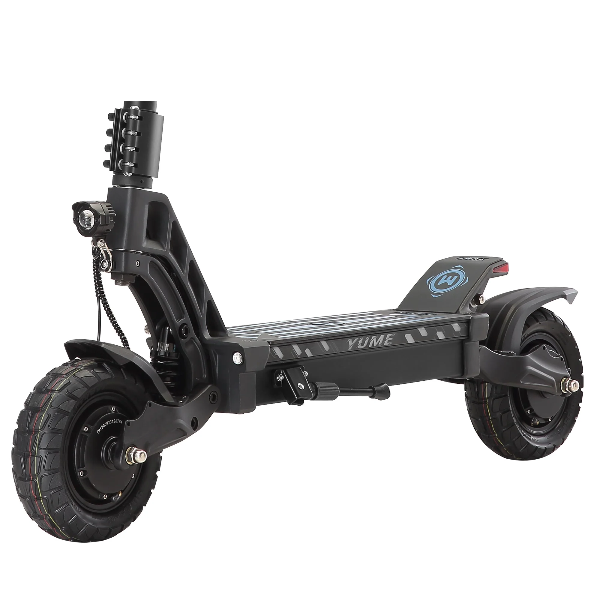 The HAWK’s combination of front and rear hydraulic ZOOM oil brakes, 160mm discs and electronic EBS control provides excellent response control and braking performance. The HAWK uses bright headlights made from aluminum alloy to illuminate the path ahead. Brake lights and turn signals also come as standard fittings. The deck and stem are also lit via inbuilt LED lighting which can be programmed via remote to suit your preference or style with a range of color and strobing configurations. Night rides will never be the same!
